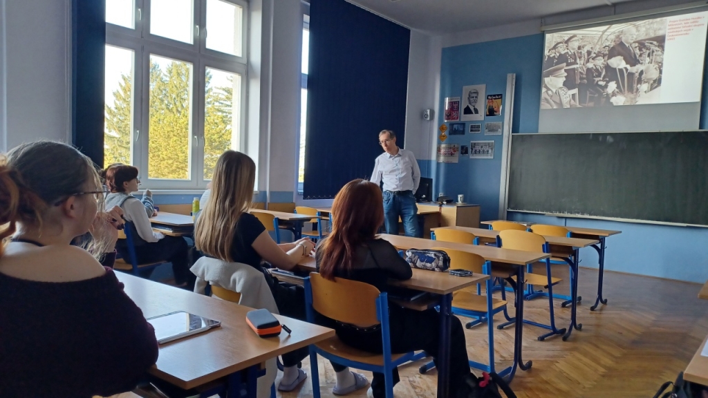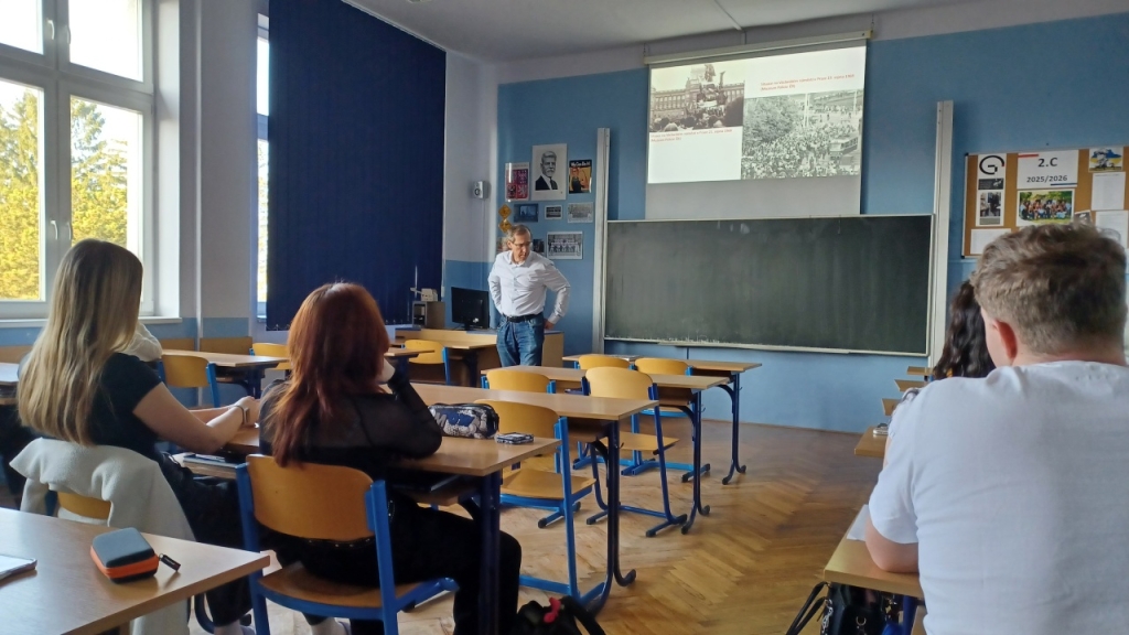 Přednáška pro studentky a studenty obou ročníků dějepisných seminářů se týkala prvního výročí okupace Československa vojsky Varšavské smlouvy, tedy 21. srpna 1969 v ulicích českých a moravských měst. Bohatý obrazový materiál doplnily unikátní záběry pořízené pracovníky StB, například z nedalekého Liberce a Prahy. Po závěrečné diskuzi, ve které studenti položili otázky tematicky blízké i vzdálenější, se Dr. Povolný přesunul na spřízněnou ZŠ Skálova, kde pro vybrané zájemce z řad devátých tříd přednášel na stejné téma.