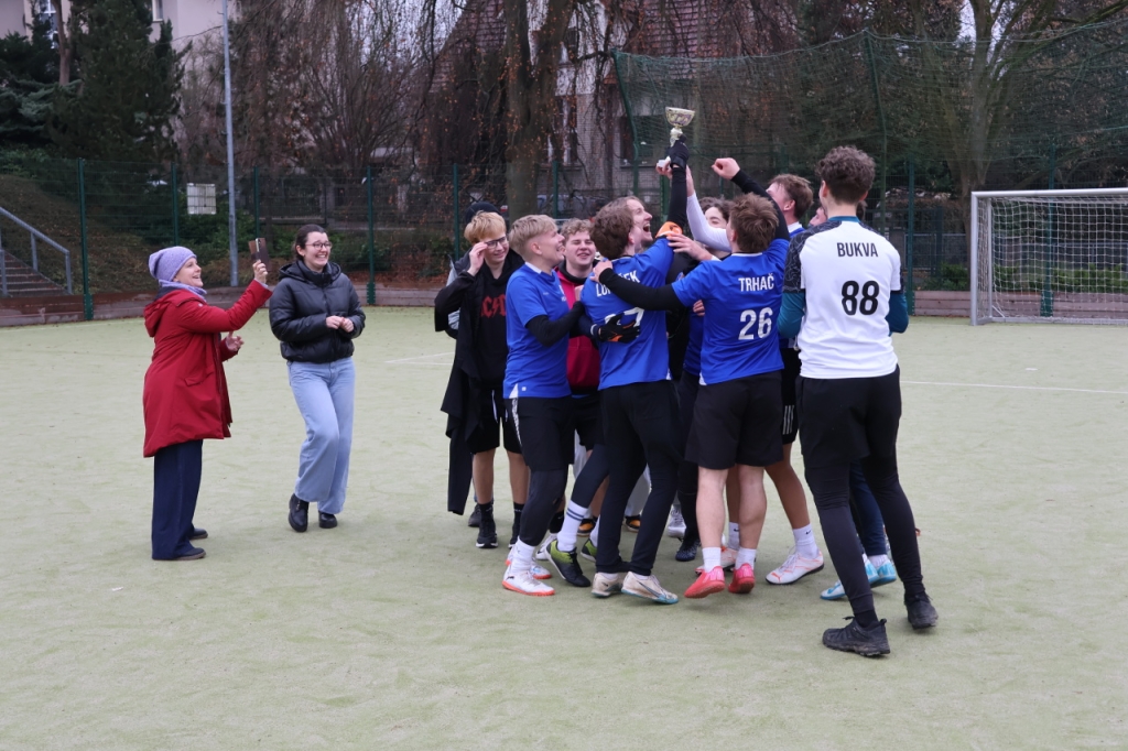 V rámci posledního dne na GyTu v roce 2025 se 19. 12. konal vánoční mezitřídní turnaj ve fotbale a volejbale.