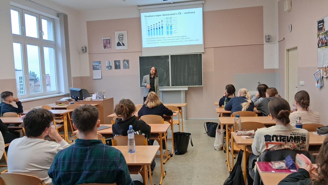 Ve čtvrtek 5. 2. 2026 jsme měli tu čest, přivítat na politicko-ekonomickém semináři pana docenta Adama Borovičku z Vysoké školy ekonomické, který studentům přednášel na téma investování na kapitálovém trhu.