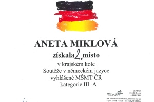 Aneta Miklová (7.A) a Lukáš Vrzáň (4.A) se zúčastnili krajského kola Soutěže v německém jazyce v Liberci.